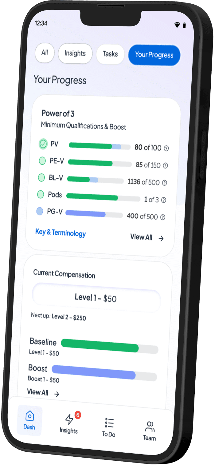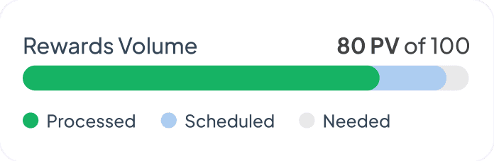 Quickly view the most important numbers that drive your business, including Personal Volume and performance trends.